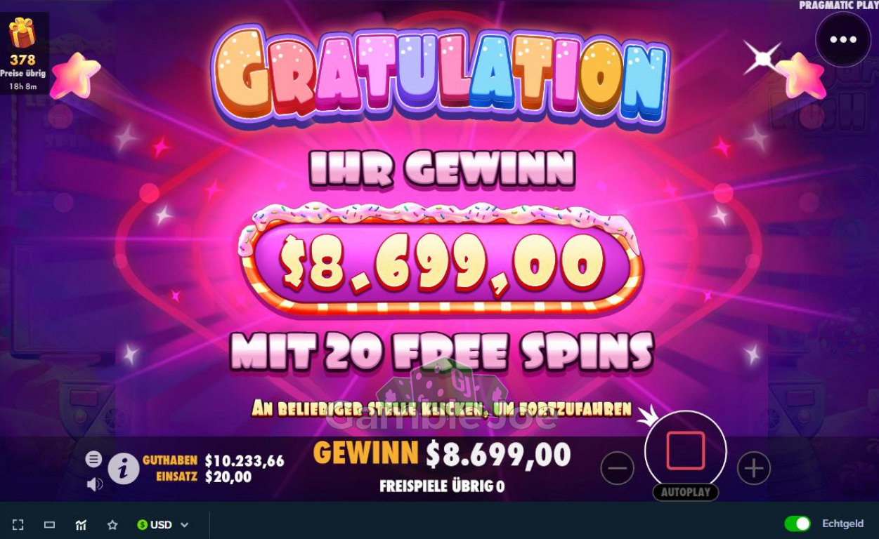 Llevando el original a nuevas alturas, íconos como ositos de goma, corazones y celebridades pueden aparecer en la gran cuadrícula de 7×7 del juego. Al colocar 5 o más símbolos cercanos, se creará una combinación ganadora y se pagará un premio en efectivo correspondiente al valor de ese símbolo. Una función de caída elimina estos grupos del juego, y las posiciones vacías se llenan desde arriba hasta que no aparezcan más ganancias en esa serie.